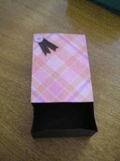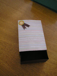 Usei a caixinha daquele requeijão cremoso famoso para guardar o mini, idéia liftada da scrapper Renata Pacheco. Cobri a caixa com papel de scrap e canson marrom, acabamento da tampa com fitas de cetim e gorgurão.