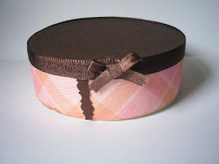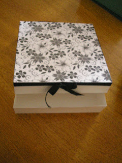Já nessa caixa com tampa usei papel para decoupagem, canson branco e fita de gorgurão.